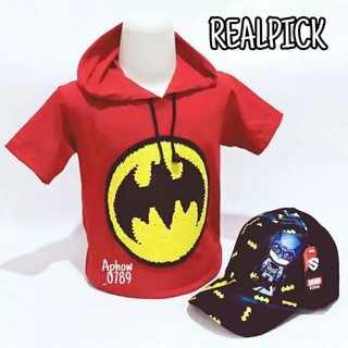 2IN1 HOODIE ANAK KAOS USAP + TOPI PRINTING BATMAN 1-10TAHUN