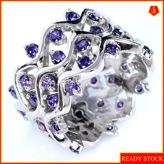 [Ready Stock]Inlaid Amethyst Ring Full Diamond Creative Fashion Elegant