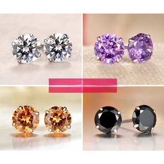 Anting Stud Zircon Amethyst Bahan Stainless Steel S925 Untuk Aksesoris