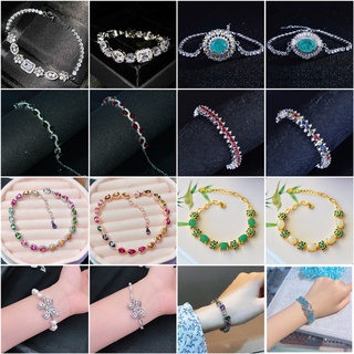 Gelang Tangan Silver S925 Retro Geometri Hias Batu Permata Berlian Untuk Wanita
