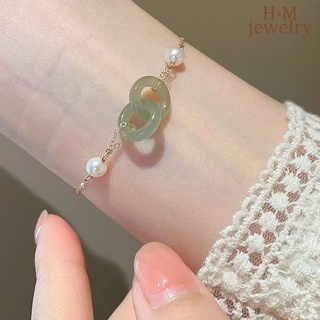 Gelang Tangan Batu Giok Hetian Aksen Mutiara Imitasi Untuk Wanita