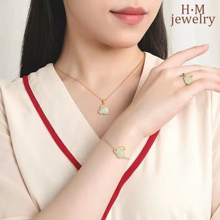 Set Kalunggelangcincinanting Tusuk Batu Giok Hetian Bentuk Kelinci Untuk Wanita