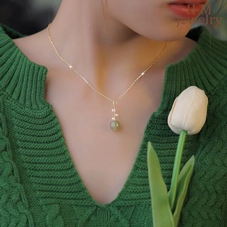 2022 Kalung Rantai Clavicle Simple Dengan Liontin Batu Giok Hetian + Mutiara Untuk Wanita