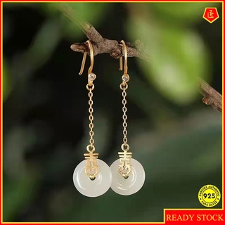 Anting Kait Gantung Batu Giok Hetian Double Happiness Peace Gaya National Untuk Wanita