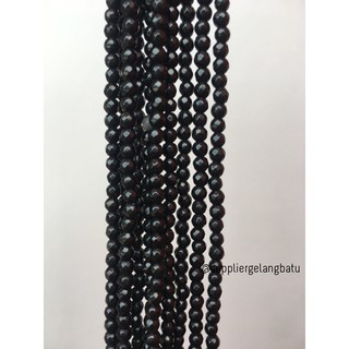Batu black onyx FACET 4mm CUTTING bahan gelang kalung akik hitam asli supplier aksesoris pria wanita