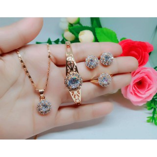 Fourfashion Set Perhiasan Wanita Batu Permata Bulat Premium