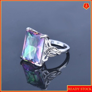[Ready Stock]Rainbow Color Topaz Square Diamond Ring Female Creative Personality