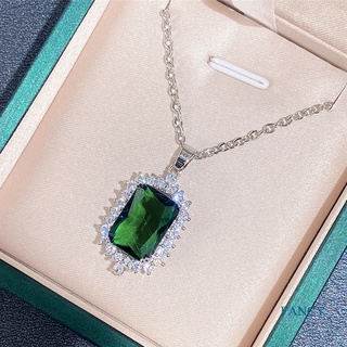 Kalung Rantai Rose Gold Hias Liontin Batu Zamrud Zircon Gaya Vintage Untuk Wanita