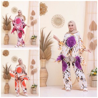 ONE SET BATWING SHIBORIE 2 in 1 (BLOUSE + CELANA ) / SETELAN RAYON WANITA KEKINIAN