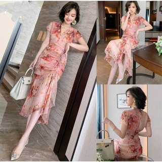 VN SUMMER DRESS / DRESS PANTAI / KOREAN DRESS BEACH PARTY V NECK PINK MERMAID FLORAL DRESS SWEETHEART