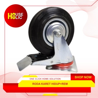 Roda Karet Hidup + Rem 5" Roda Caster Etalase Troley Troli Roda Kastor