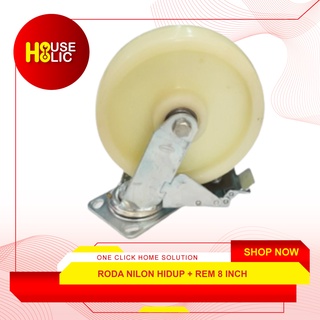Roda Nilon Hidup + Rem 8" Roda Caster Etalase Troley Troli Roda Kastor
