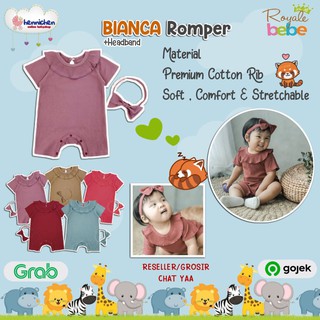 ROYALE BEBE BIANCA ROMPER ROMPER BAYI BIANCA PLUS HEADBAND 6-18 BULAN