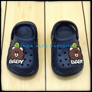Sendal Bayi Laki Karet Usia 6 - 12 Bulan NAVY Sendal Anak Cowok Karet Model Tali belakang Motif Kartun Lucu Size 19-23