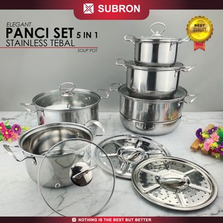 SUBRON Stock Pot Set Panci Tinggi Soup Tutup Stainless 5in1 + Steamer