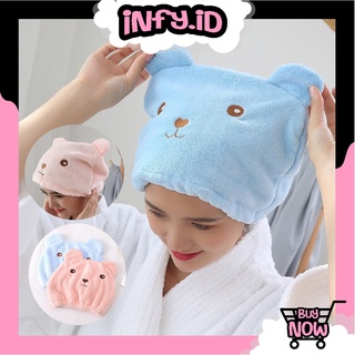 INFY - R513 Handuk Keramas Mandi Topi Handuk Pengering Rambut Kepala Hair Tower Shower Cap Karakter Bear Import