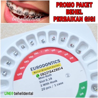 ORIGINAL PAKET BEHEL GIGI PERMANEN BRACKET EURODONTICS EURO METAL WITH HOOK 3 ROTH / BEHEL DENTAL KAWAT Untuk PERAWATAN PERBAIKAN Gigi - Ortho Orthodontic Eurodontic Behelldental