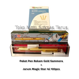 PAKET PEN BEKAM STAINLESS GOLD SAMMORA DAN JARUM MAGIC STAR ISI 100PCS
