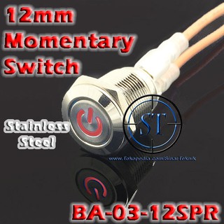BA-03-12-SPR Switch Push ON 12mm Power MERAH Momentary Klakson Saklar Tombol tekan On ZOff Komputer Bel Anti Air