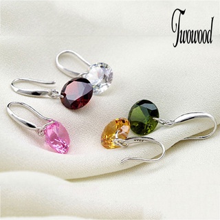 Anting Hook Silver Plated Bentuk Bulat Aksen Berlian Imitasi Untuk Wanita