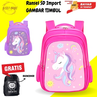 GB Tas sekolah anak perempuan SD gambar timbul ransel anak import bahan nilon tebal