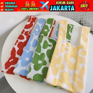 TI 3146 - Tas BUFFOLLOW Vacay Tote Bag Motif Bunga - Tas BUFOLLOW BUFFOLLOW BAG VIRAL THAILAND - BENE Korean Knitted Checkered Tote Bag / Tas Rajut Korea - E1