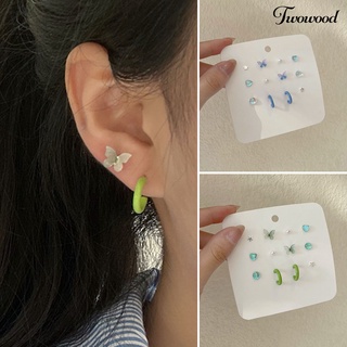 6 Pasang Anting Stud Bentuk Bunga Kupu-Kupu Aksen Mutiara Tiruan Untuk Wanita