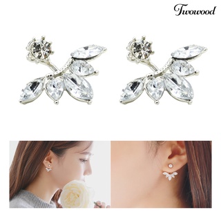 1 Pasang Anting Stud Bentuk Bunga Aksen Berlian Imitasi Bahan Alloy Untuk Wanita