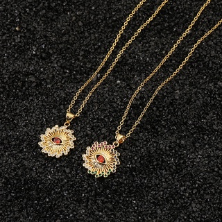 In color zircon merah mata liontin bulat kincir angin kalung berbentuk O rantai wanita