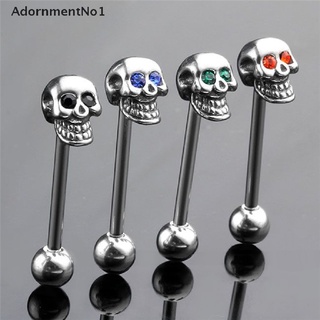(AdornmentNo1) 14g Anting Tindik Lidah / Tubuh Bentuk Tengkorak Bahan Stainless Steel