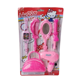 [105AB] Mainan Anak Perempuan Hello Kitty Beauty Set Make Up / Peralatan Dandan + Tas + Cermin + Hairdryer + Sisir + Jam Tangan TANPA BATERAI