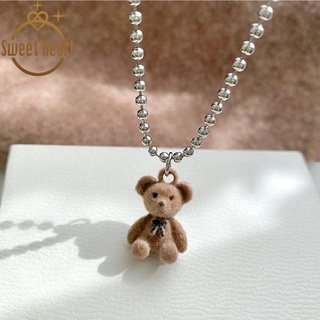Kalung Rantai Klavikula Bentuk Hati Beruang Warna Silver Gaya Korea
