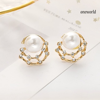 OW@ Fashion Women Rhinestone Faux Pearl Hollow Ear Stud Earrings Jewelry