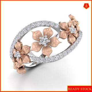 [Ready Stock]Color Separation Ring Female 18K Rose Gold Flower Rhinestone-Embedded Ring