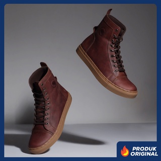 STREAM 02 BROWN ORIGINAL x REYL MAN Sepatu Kulit Sapi Asli Pria Boots Coklat Tali Casual Semi Formal Vintage Klasik Dewasa Jalan Santai Hangout Kuliah Kerja Kantor Classic Boot Genuine Leather Shoes Motor Bikers Touring 2.0 Footwear Keren Terbaru Branded