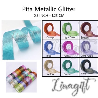 ( 3 Meter ) PITA METALLIC GLITTER - 0.5 IN / 1.2 CM / 1/2 INCH PITA METALIK GLITER HIASAN KADO PARCEL HAMPERS SOUVENIR GOODIE BAG - DEKORASI RUANGAN PESTA - RANGKAIAN BUKET BUNGA FLORIST DIY