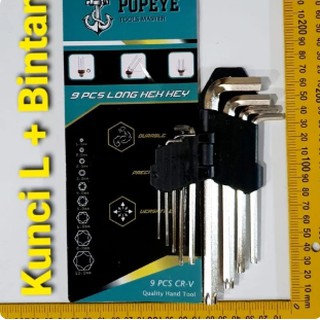 Kunci L Model Long Panjang Torx Hex Key Bintang 9 Pcs Set