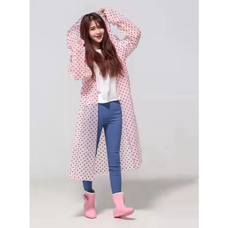 Jas hujan wanita terusan polkadot EVA - 851 stylist fashion raincoat travelling transparan transparant korea