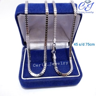 Kalung Perak Silver Asli 925 Lapis Emas Putih Model Milano Kaca 45 50 60 Cm - Kalung Perak Pria Wanita Anti Karat