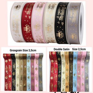 5 YARD - 2,5 CM | PITA KADO HAPPY BIRTHDAY TULISAN EMAS TIMBUL