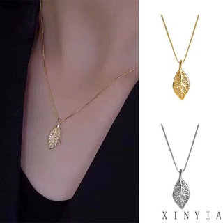 【Bayar di tempat】Kalung titanium wanita anti karat liontin daun emas bertatahkan berlian kristal perhiasan Korea