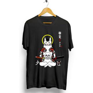 Fourfashion Kaos Pria Kaos Distro CAT SAMURAI Black CN748