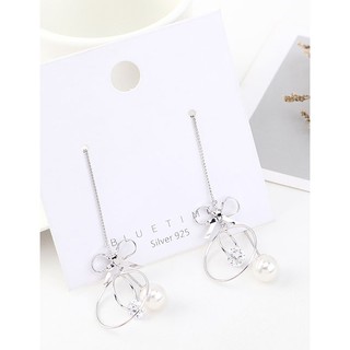 LRC Anting Tusuk Fashion Platinum Tassel Pearl Bow Circle With Diamonds Earrings Y63126