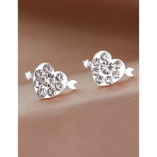 LRC Anting Tusuk Fashion Silver Heart-piercing Alloy Earrings With Diamonds K09606