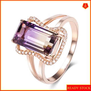[Ready Stock]Ametrine Tourmaline Colored Gems Women's Ring 18K Rose Gold Elegant Fashion