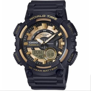 Casio original AEQ110W/AEQ110W-1A3VDF hitam rose gold jam tangan pria dual time