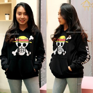 Sweater distro anime Onepiece Mugiwara Logo Black Fleece
