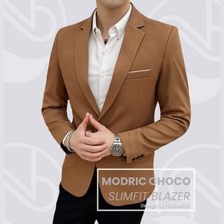 BLAZER KEREN COWOK MODRIC CHOCO - JAS PRIA SLIMFIT KOREA STYLE PESTA KERJA KANTOR EDISI TERBARU