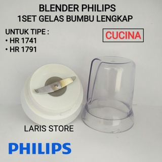 Gelas Bumbu + Pisau Mounting 1set Blender Philips Cucina Model Lama Jadul HR 1741 HR 1791