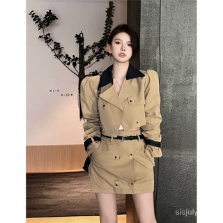#Sisjuly# Jas wanita mantel kardigan pendek wanita musim gugur rok pendek paket rok pinggul set dua